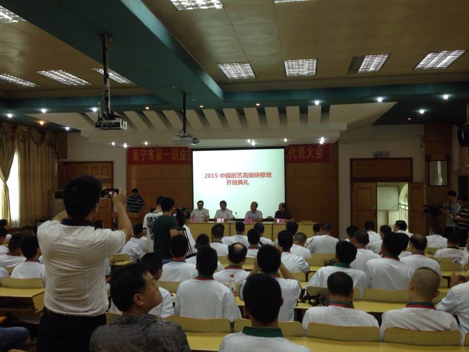 由廣味源冠名的中國(guó)廚藝高級(jí)技能研修班(精品旺銷(xiāo)菜),2015年7月21日—7月13日在南寧順利舉辦。本次研修班由中國(guó)烹飪協(xié)會(huì)名廚專(zhuān)業(yè)委員會(huì)主辦,南寧市第一職業(yè)技術(shù)學(xué)校承辦,本次培訓(xùn)面向全國(guó)餐飲企業(yè)的中高級(jí)廚政管理人員、廚師長(zhǎng)和有較好烹調(diào)基本功底和技能的中餐主廚,特邀盧永良大師授課,講授低成本、精烹制、高毛利的精品旺銷(xiāo)菜,并根據(jù)當(dāng)前餐飲業(yè)發(fā)展形勢(shì),理論結(jié)合實(shí)際,對(duì)大眾性、適用性的菜品進(jìn)行現(xiàn)場(chǎng)授課教學(xué)。