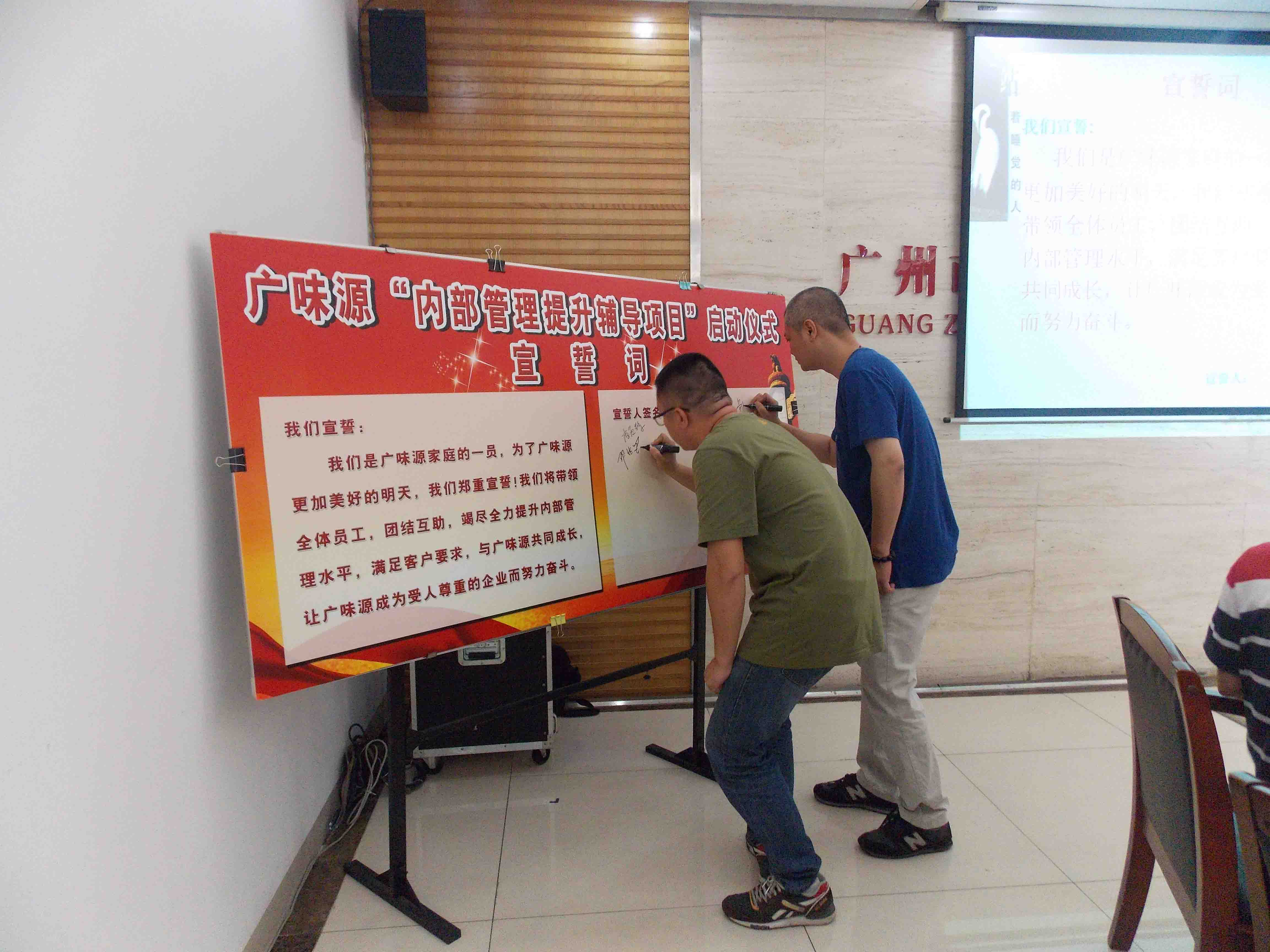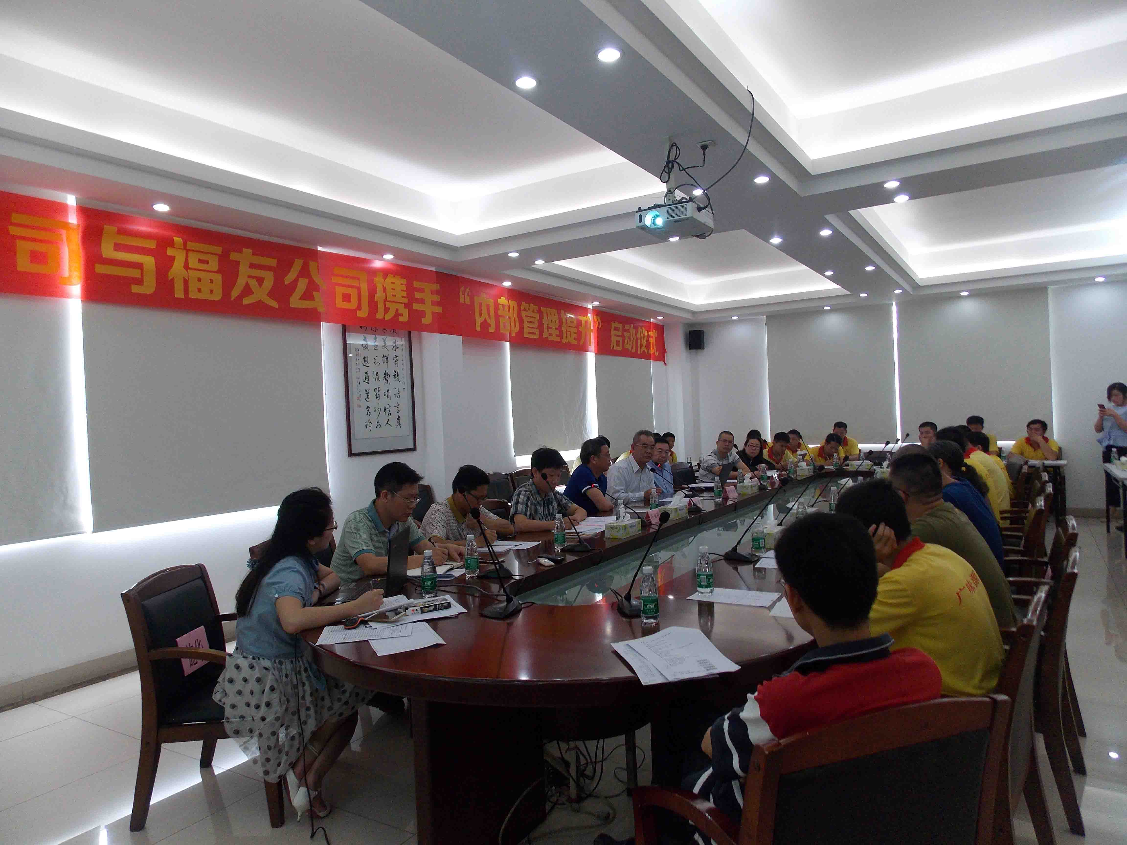 為提升公司內(nèi)部管理素質(zhì),我司攜手臺(tái)灣福友企管有限公司,導(dǎo)入精益生產(chǎn)管理,首期“內(nèi)部管理提升輔導(dǎo)項(xiàng)目”啟動(dòng)儀式于5月9日在公司二樓會(huì)議室隆重舉行!廣味源班長(zhǎng)以上級(jí)別的管理人員參加本次項(xiàng)目啟動(dòng)儀式。